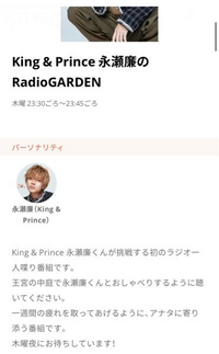 King Prince永瀬廉がラジオパーソナリティに初挑戦 6 13 木 King Prince 永瀬廉のradio Garden 文化放送 記事詳細